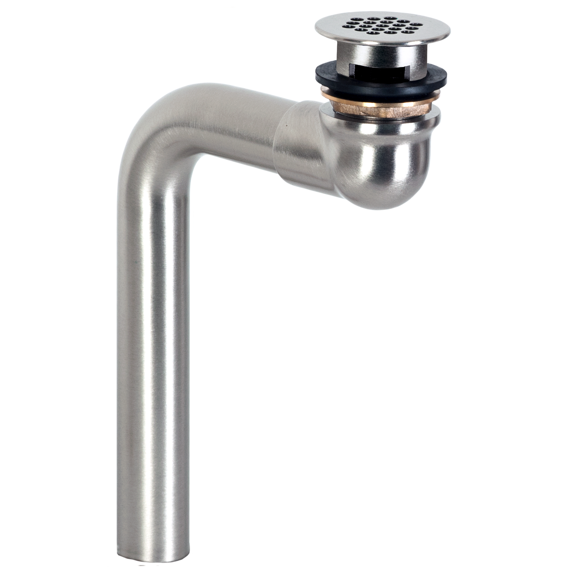 Offset Grid Drain with Overflow Port: The sink drain with a flat strainer allows free water to flow down the drain. The Grid Drain does not close or stop the flow of water.