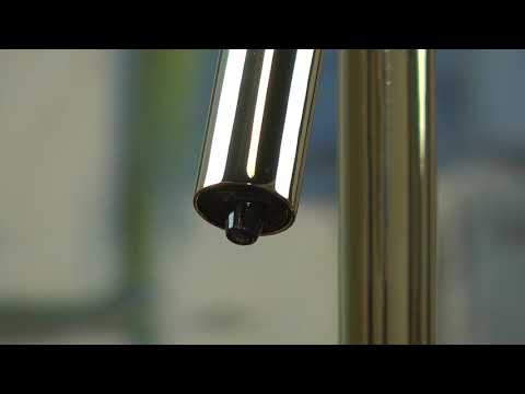 This electronic soap dispenser is designed for vessel bowl sink applications, rising 2" above the countertop.